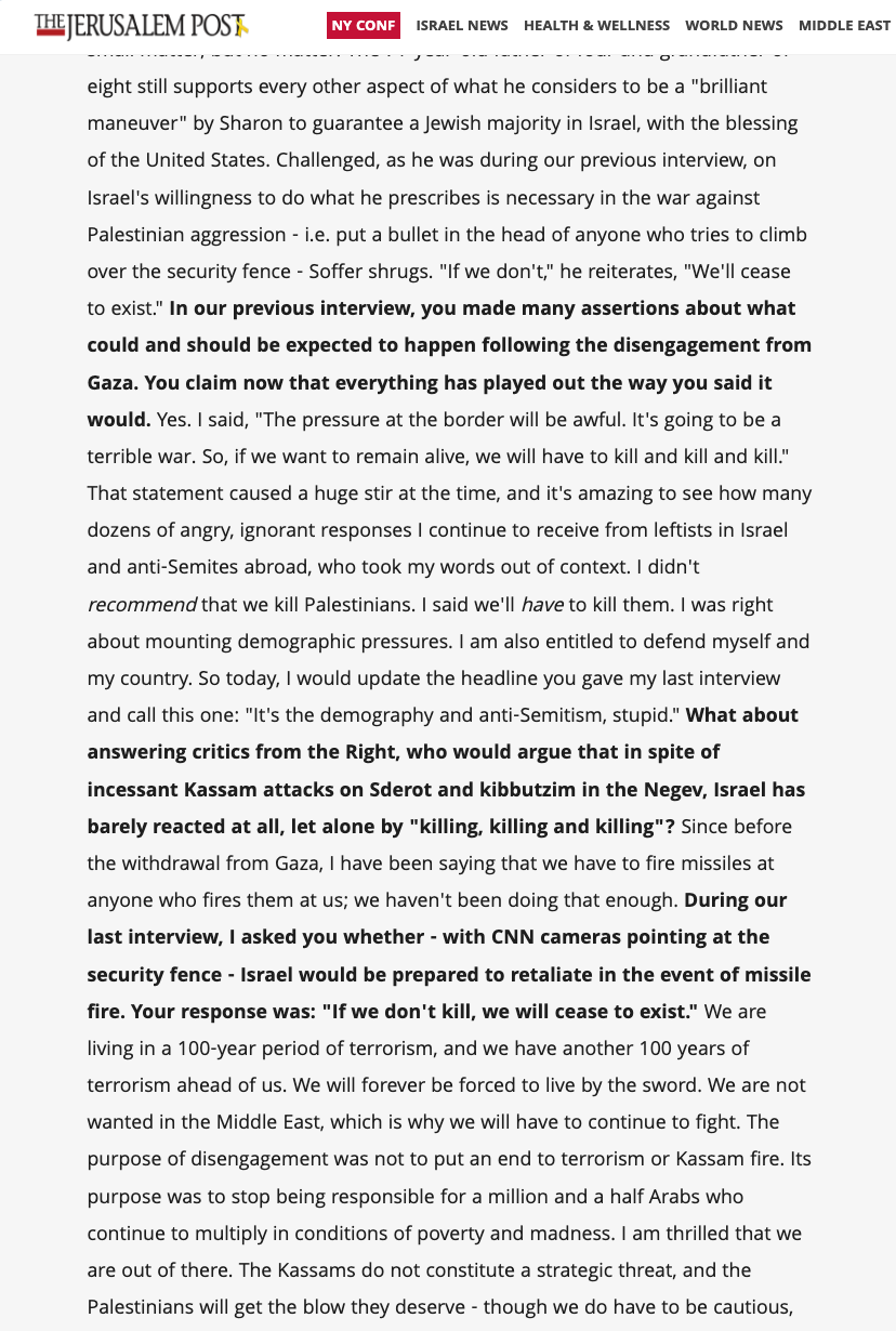 I didn't recommend that we kill Palestinians. I said we'll have to kill them. I was right about mounting demographic pressures.