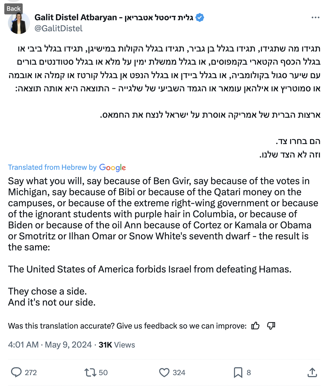 5. My tweet from more than four months ago reached foreign networks, in I declare and say that I unequivocally wish the terrorists in the Gaza Strip a holocaust, after what they did to us and our hostages, I do not apologize [...] Blood vengeance!