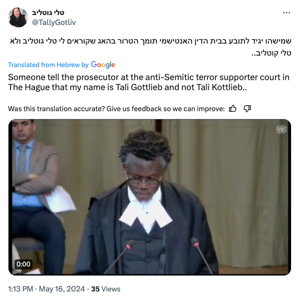 49. Someone tell the prosecutor at the anti-Semitic terror supporter court in The Hague that my name is Tali Gottlieb and not Tali Kottlieb.