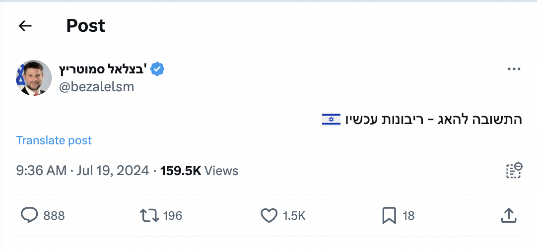 99. Both humanitarian aid to Hamas and a demand for arrest warrants against state leaders. The Hague teaches the State of Israel anew the concept of both eating the putrid fish and being expelled from the city. I call to announce an immediate halt to humanitarian aid to Hamas and to boycott the deliberation in The Hague, which condemned us, beforehand, with illegitimate rules.