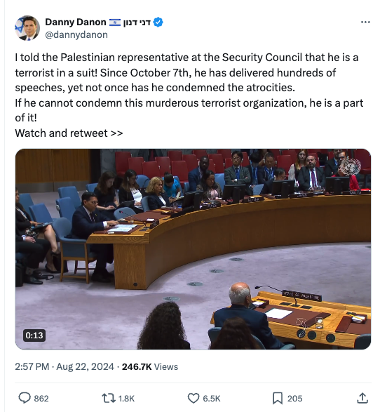 13. I told the Palestinian representative at the Security Council that he is a terrorist in a suit!