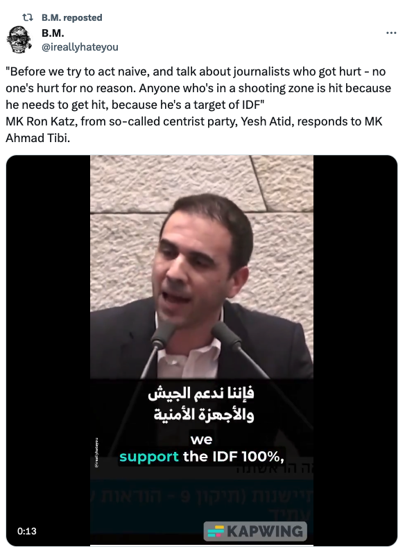 Before we try to act naive, and talk about journalists who got hurt - no one's hurt for no reason. Anyone who's in a shooting zone is hit because he needs to get hit, because he's a target of IDF.